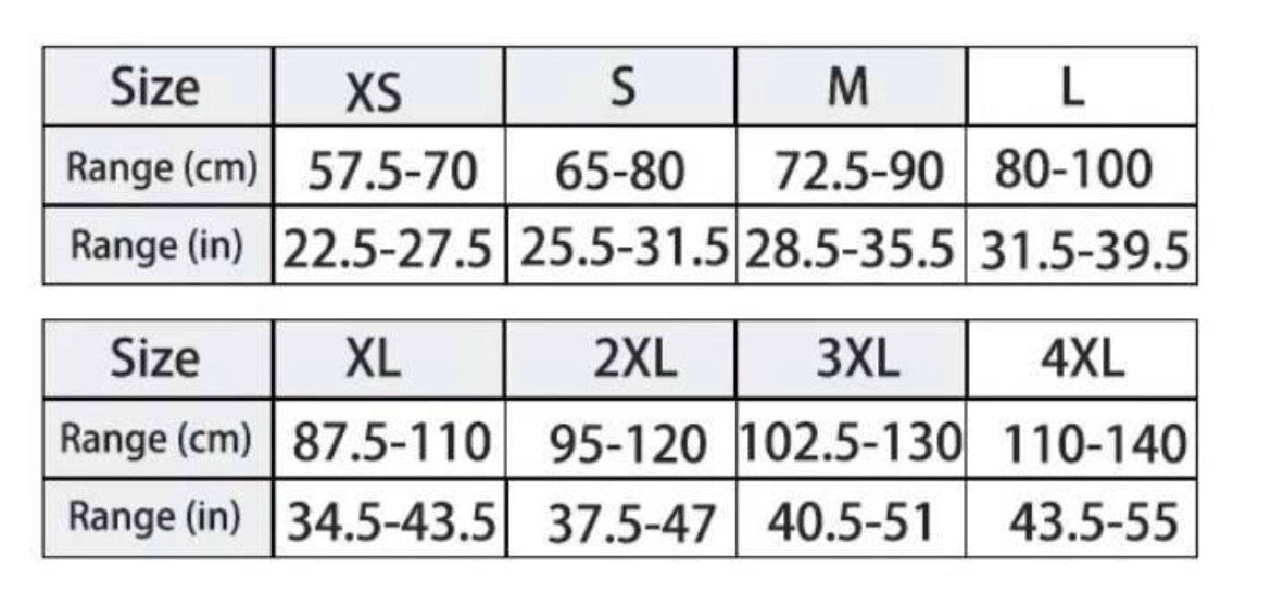 XL | 87.5-110 cm | 34.5-43.5 in |